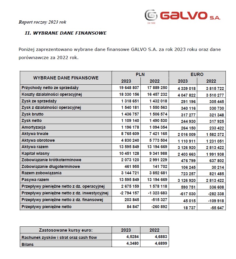 Wybrane dane finansowe